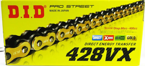 D.I.D 428 VX Gold on Black 136 Link Chain including joining link